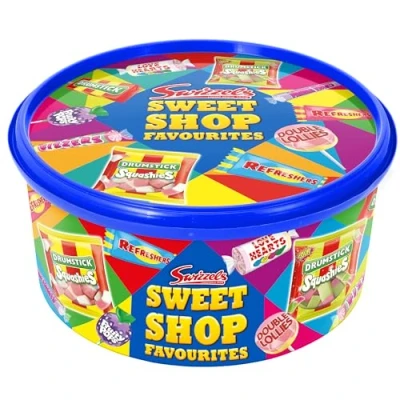 Classic Sweet Shop in a Tub: Dive into nostalgia with Swizzels Sweet Shop Favourites, a 650g tub brimming with 11 classic and modern sweets. Relive your cherished sweet shop memories from Squashies to Fizzers, Parma Violets and many more. A Taste for Everyone: This assorted sweet mix caters to all palates, offering a delightful variety of Swizzels' favourite lollies and sweets. Whether you adore tangy, sweet, or fizzy treats, this pouch has a flavour for everyone to enjoy. Celebration-Ready Sweets: Perfect for parties, celebrations, or as a thoughtful gift, these free-from-artificial-colours sweets add a touch of joy to any special occasion. Share the timeless happiness that Swizzels has been bringing since 1928. Swizzels' Legacy of Joy: Experience the legacy of a brand that has been crafting delicious sweets since 1928. This 650g tub of Sweet Shop Favourites embodies Swizzels' commitment to quality sweets and joy in every wrapped sweet treat. Ultimate Sharing Sweet Tub: With a generous mix of classic sweets, modern Squashies, and more, this sweets tub is ideal for sharing. A convenient way to bring a smile to kids and adults alike, it's the perfect addition to any gathering!