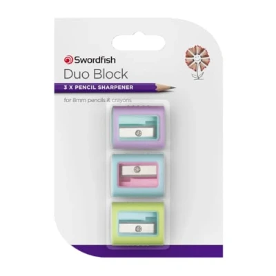 Swordfish ‘Duo Block’ Pencil Sharpener [Pack of 3] Assorted Colours [40386]