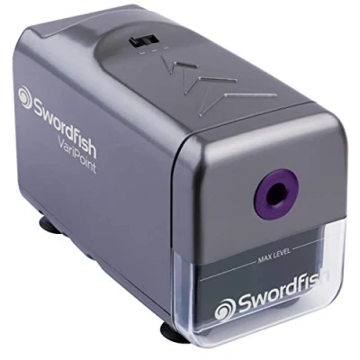 Swordfish ‘VariPoint’ Electric Pencil Sharpener with Replaceable Helical Blade and Point Options [40232], Grey