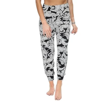 SXME MIGHT SAY Women's Harem Trousers Ladies Casual Pants Elasticated Waist Soft Stretchy Fabric Full Length Plus Size UK (UK, Numeric, 8, 26, Regular, XL (16 18), Paisley Print)
