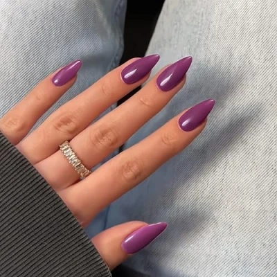 SXVME 48 Pcs Berry False Nails Almond Medium Length, Acrylic Press on Stiletto, Solid Color Glossy Gel Full Cover Fake for Women Finger Decoration