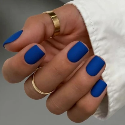 SXVME 48 Pcs Matte Royal Blue Press on Nails Short Square, Acrylic False Coffin, Natural Small Fake Nail Set, Elegant Solid Color Full Cover Soft Gel Stick for Women Fall Winter