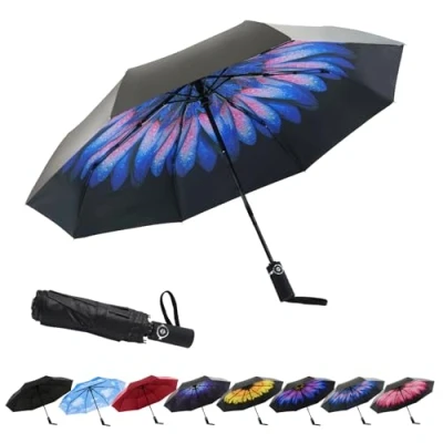 DURABLE DESIGN TO WINDPROOF: This is unbreakable umbrella for men and women. The SY Compact umbrella have Black Metal Shaft and 8 Fiberglass Ribs ensure high resistance to 60 mph wind gusts. It can flex slightly to withstand powerful gusts without turning inside out SUPERIOR WATERPROOF: SY Travel Umbrella have a premium quality canopy which is made from 210T pongee that could highly water repellent and quick drying. The fabric won't easily soaked to shake gently after closing the umbrella, then all the drops will gone FULLY AUTOMATIC UMBRELLA: Auto open and close umbrella can handy for quick entry into a car, building or tent. You can quickly open or close the travel umbrella at the press of a button COMPACT AND LIGHTWEIGHT UMBRELLA: It is convenient to carry that is only 27.5cm when folded, allowing you to store it anywhere. Because of the fiberglass material, our umbrella is lightweight(about 320g) ABSOLUTE SATISFACTION GUARANTEE: We are a real umbrella manufacturer that we can guarantee the quality of the umbrella. You can buy a great quality umbrella at a very good price. If it doesn't meet your expectations, just contact us at once. If anything at all goes wrong with your umbrella, we will send you a repair replacement