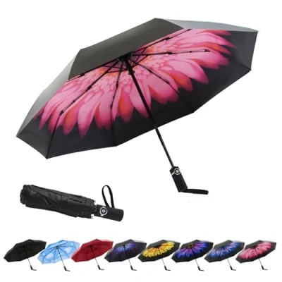 DURABLE DESIGN TO WINDPROOF: This is unbreakable umbrella for men and women. The SY Compact umbrella have Black Metal Shaft and 8 Fiberglass Ribs ensure high resistance to 60 mph wind gusts. It can flex slightly to withstand powerful gusts without turning inside out SUPERIOR WATERPROOF: SY Travel Umbrella have a premium quality canopy which is made from 210T pongee that could highly water repellent and quick drying. The fabric won't easily soaked to shake gently after closing the umbrella, then all the drops will gone FULLY AUTOMATIC UMBRELLA: Auto open and close umbrella can handy for quick entry into a car, building or tent. You can quickly open or close the travel umbrella at the press of a button COMPACT AND LIGHTWEIGHT UMBRELLA: It is convenient to carry that is only 27.5cm when folded, allowing you to store it anywhere. Because of the fiberglass material, our umbrella is lightweight(about 320g) ABSOLUTE SATISFACTION GUARANTEE: We are a real umbrella manufacturer that we can guarantee the quality of the umbrella. You can buy a great quality umbrella at a very good price. If it doesn't meet your expectations, just contact us at once. If anything at all goes wrong with your umbrella, we will send you a repair replacement