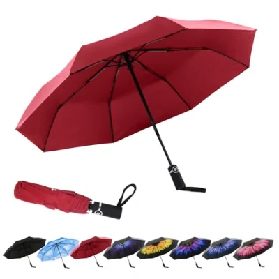 Premium quality, stainless steel, ultra-slim, windproof, travel Umbrella with easy open /close; 8-rib fortified frame; fiberglass flex clip; chrome plated metal shaft. Durability-Tested up to 5000 times; frame is wind-resistant up to 55 mph; resin reinforced ribs will not bend or flip out in strong gusts; stainless steel frame will not corrode in constant presence of water or moisture. Umbrella canopy is made with 210T polyester and coated; it will not soak through or leak, even in torrential downpours; rubberized grip keeps the handle secure and slip-free in your hand. Auto open/close function allows for easy one handed operation. Measures just 12" long and weighs less than 11.0oz for easy storage in purses, briefcases, backpacks, luggage and more! ABSOLUTE SATISFACTION GUARANTEE: We are a umbrella manufacture and we can guarantee the quality of the umbrella. You can buy a great quality umbrella at a very good price. If it doesn't meet your expectations, or anything at all goes wrong with your umbrella, just contact us at once. we will send you a repair replacement no return required.