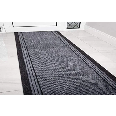 Sydney Non Slip Hallway Runner Stair Custom Long Length Hard Wearing Rubber Back Entrance Stripe Design Mats Kitchen Runners, Grey, Length: 6 ft(182.88cm)