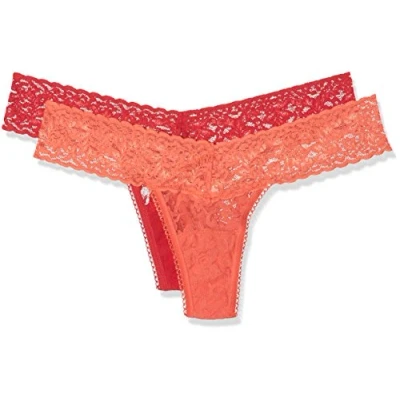 Sylvie Flirty Lingerie Women's AKI Thong, Dragon Fruit/Black 9999, One Size (Pack of 2)