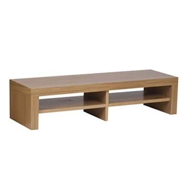 TV table in oak veneer finish and offers one shelf. Material used: wood manufactured. Made in Portugal Self-assembly required Dimensions: 154cm x 49cm x 37cm
