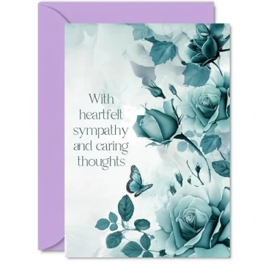 Sympathy Cards Condolences & Caring Thoughts Card Beautiful Thinking of You Card, 5x7 Inch Bereavement Floral Flowers Greeting