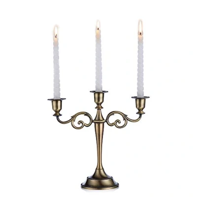 Sziqiqi Bronze Metal Candle Holder 3 arms Stand 27cm Tall Wedding Event Candelabra Stick,