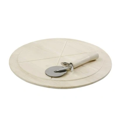Oatmeal Hevea Wood 36cm Round Pizza Board Pizza Cutter Gift Boxed