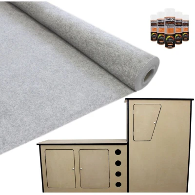 Kit out your van with this premium van lining carpet, available in a range of colours! The super stretchy yet durable design allows it to mould around wheel arches, windows and metal work easily with no creasing to get the perfect professional finish. The heavy duty carpet is 100% bleachable and is ideal for lining out vans, motor homes, cars and much more! Once you’ve finished lining your motorhome, finish the look off with this stylish yet sturdy camper kitchen! Really make it unique by sanding, painting, wrapping or spraying your new cabinets! 5 FREE cans of T-Mech ultimate trim adhesive included, which has an amazing high temperature resistance of 120° and a robust adjustable flow rate nozzle. Application is quick and easy with the specially formulated trim adhesive perfectly designed for use in the automotive industry. Lining Features: T-Mech high quality van lining carpet in silver grey. 5 FREE T-Mech ultimate adhesive cans included. The super stretchy design shapes with no