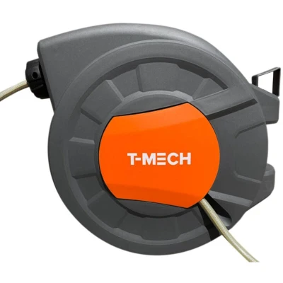 T Mech Hose Pipe Reel 20m + 2m Auto Rewind Wall Mounted 8 Spray Nozzle Gun, Neat Retractable With Bracket And Fixings, 180 pivot