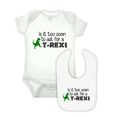 T Rex Babygrow and Bib Double Pack (6 9mths, White)