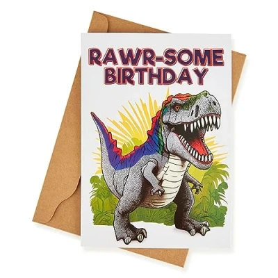 T rex Birthday Card: 21cm x 15cm Fun and Vibrant Dinosaur Celebration Design Ideal Greeting for Boys Girls to Make Their Special Day Roar with Excitement