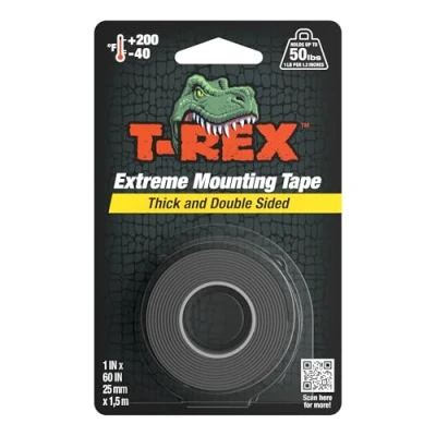 T Rex Tape Extreme Hold Heavy Duty Double Sided Mounting Black, Holds up to 50lbs, 25mm x 1.5m