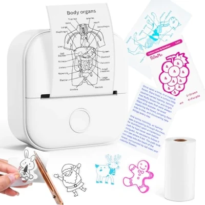 T02 Mini Printer Bluetooth Inkless Instant Photo Printer, Small Thermal Pocket Sticker Portable Phone Picture for Kids Birthday, Children, White