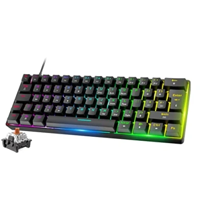 Portable 60% Gaming Keyboard: The remarkable advantages of small size and large functions make this mini 60% mechanical keyboard the best choice for gamers. The compact 62-key design can reach 89-key standard keys and multimedia functions through FN combination. The size is only 60 percent of the full-size keyboard, which saves desktop space and is easy to carry. Brown Switch Mechanical Keyboard: The game keyboard uses the universal switch in the mechanical keyboard - the brown switch. This brown switch gaming keyboard has a slight sense of paragraph, and the percussion sound is between the red switch and the blue switch. 50 million strokes tested, 60+/-15g stroke pressure and 2.0+/-0.2mm stroke stroke. Comfortable to the touch, responsive, and knock-resistant. 18 RGB Chorma Backlit: RGB backlit gaming keyboard, each LED light with 256-level PWM, 18 cool lighting effects, choose at will, add fun to the game. FN+Tab key can switch a variety of backlight effects. Press FN+Backspace to turn off/on the backlight. High-quality ABS two-color injection keycaps with high light transmittance and wear resistance. PBT Dye-Sublimation Keycap: Unique gaming style heat-sublimation keycaps make your keyboard stand out and show your personality. Each key of the keyboard has an independent switch control, and the whole key is anti-ghosting, allowing multiple keys to run at high speed at the same time without conflict. Powerful gaming performance allows you to enjoy high-end games with blazingly fast responsiveness. Plug and Play: The keyboard ships with a detachable USB-C cable for easy portability. The wired keyboard is plug and play, no driver software required. It is widely compatible with PC, laptop, computer, Windows 2000 / 7/ 10 / XP / VISTA / ME / MAC OS, ect. Press and hold FN+ESC for about 3 seconds to restore the keyboard to factory settings.