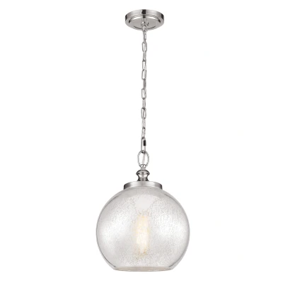Marrying an elegant spherical silhouette with the on- trend look of exposed lamping, this chain ceiling pendant gives an all-together modern yet classic look. A silver leaf technique is used to produce a true silver Mercury glass effect. The spun socket cup adds an extra special detail in the transition from the glass shade to the bulb. Finished in brushed steel.