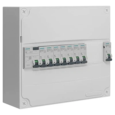Pre-equipped 1 row table. For installation in GTL (technical housing sheath) or surface mounting. Contains: 1 x differential switch 30mA 40A type AC 2 x 10A circuit breakers + 3 x 16A circuit breakers + 2 x 20A circuit breakers + 1 x 32A circuit breaker 1 horizontal comb with 40A and 63A interdifferential connection Dimensions: Height: 225mm Width: 250mm Depth: 97mm, Weight: 3.9242282636 pounds, Manufacturer: SIEMENS Ingenuity for life