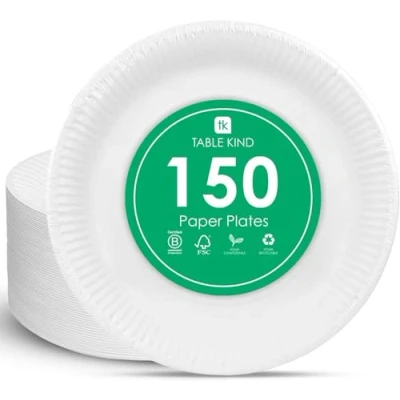 TABLE KIND | 150 BULK PACK | 22CM | Eco-Friendly Paper Plates for Catering & Everyday Use, Eco-Friendly, Recyclable & Sustainable Disposable Tableware, Party Supplies, Home Compostable, | Made in EU | MADE IN THE EU, these paper plates meet high-quality standards, providing a touch of sophistication to your table settings for parties, catering events, and everyday use. SUSTAINABLE AND RECYCLABLE: Make a sustainable choice with these white plates, designed for minimal environmental impact. Dispose of them responsibly, knowing they are FSC-certified and recyclable. VERSATILE 150-PACK: With 150 white paper plates included per pack, these versatile disposable paper plates are perfect for gatherings, events, and everyday use at home, guaranteeing an abundant supply for any occasion. CATERING EVENTS: Perfect for serving food at BBQ buffets, restaurants, festivals and parties, kids crafting, highly versatile, these plates can be used for both hot and cold foods. CONVINIENT for family gatherings with easy cleanup, these plates are sturdy and reliable, offering good value paper plates.