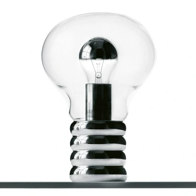 Lamp MastersBulb from Ingo Maurer was created in 1966 but is still a fresh and unique table lamp thanks to its almost cartoonish look. The base is formed like the socket of a classic incandescent bulb, made from chromed and polished metal. The shade itself is shaped like the glass part of an incandescent bulb, made from hand-blown Murano crystal glass. In 1969, the Bulb table lamp became part of the permanent design collection at MoMA in New York. These lamps are made-to-order as they are manufactured in limited runs - expect a delivery time of three to four weeks.