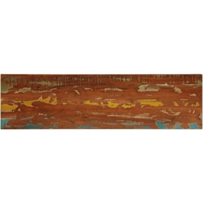 Give a new life to your table with this wooden table top. It is an excellent solution for freshening up your table at home or in a commercial setting. Solid reclaimed wood: Solid reclaimed wood consists of reused timbers such as teak, mango wood, pinewood, and beech. These materials are recycled from old buildings such as factories, sheds, and boats. As every piece is handmade, colours will vary for each product. Versatile applications: The replacement table top can be combined with different bases according to your needs. Rustic design: With a simple and clean look, the wooden furniture top will add a rustic charm to your dining areas. Easy-to-clean surface: The smooth tabletop is easy to clean with a damp cloth. Good to know: Each item is unique with variations in colours and grains. The delivery is random, ensuring the exclusivity and individuality of your product. Material: Solid reclaimed wood with a mixed colour finish Dimensions: 110 x 40 x 2.5 cm (L x W x T) Shape: Rectangular