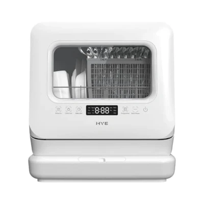 No Plumbing Required for Easy Setup – The HYE table top dishwasher features a built-in water tank, making it a portable dishwasher no plumbing model that’s ideal for homes, offices, RVs, and dorms. Enjoy fast installation without the need for a fixed water connection. Compact & Space-Saving Solution – Designed as a mini dishwasher table top unit with 3 place settings, it’s perfect for singles, couples, and small families. This compact dishwasher fits on counters, worktops, or desktops, saving valuable kitchen space while delivering powerful cleaning. 6 Wash Programs for Every Need – With intensive, eco, glass, rapid, fruit, and normal modes, this countertop dishwasher machine adapts to different dishwashing tasks. Whether cleaning delicate glasses or stubborn cookware, this dish washer ensures sparkling results every time. Low Noise, High Performance – Operating at just 58dB, this desktop dishwasher runs quietly without sacrificing cleaning power. Perfect for open-plan kitchens, apartments, or offices, this dishwasher portable design lets you enjoy clean dishes without excess noise. Modern White Design with Versatile Use – The sleek, white finish makes this dishwasher table top unit stylish and practical. Use it as a small dishwasher no plumbing solution on your kitchen counter, or as a worktop dishwasher in shared spaces for maximum convenience.