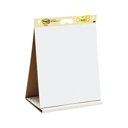 All in one table top easel and portable whiteboard. Ideal for presentations, meetings, brainstorming and more. Comes with a 20 sheet easel pad. Adhesive sheets will stick to most surfaces. Dimensions: 500x580mm. Colour: White.