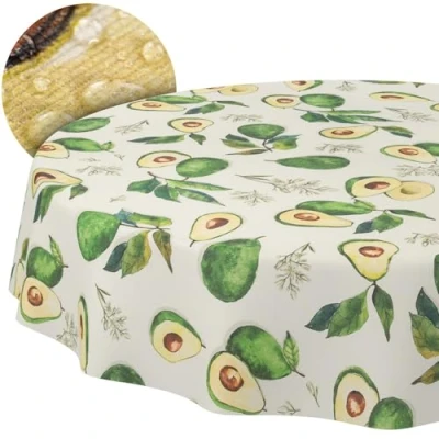 Tablecloth Fabric Washable Easy Care Lotus Effect Dirt and Water Repellent for Indoor Outdoor Use Round 140 cm Avocado