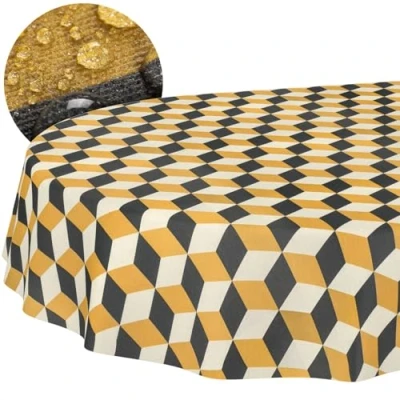 Tablecloth Fabric Washable Easy Care Lotus Effect Stain Resistant and Water Repellent for Indoor Outdoor Use Oval 180 x 140 cm Cut Edge 3D
