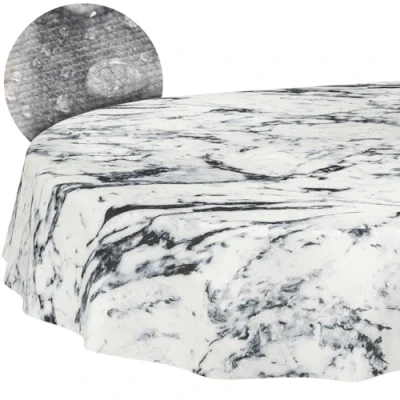 Tablecloth Fabric Washable Easy Care Lotus Effect Stain Resistant and Water Repellent for Indoor Outdoor Use Oval 180 x 140 cm Marble Black