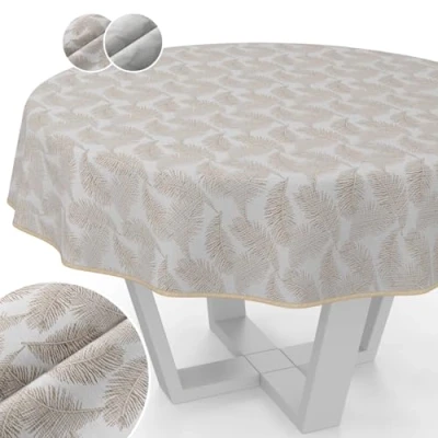 Tablecloth Fabric Washable Lurex Teflon Coated Easy Care Lotus Effect Dirt and Water Repellent Kate Floral Leaves Round 140 cm with Hem (Edged) Gold