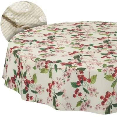 Tablecloth Fabric Washable Table Cloth Easy Care Lotus Effect Dirt and Water Repellent for Indoor Outdoor Round 140 cm Cut Edge Cherry