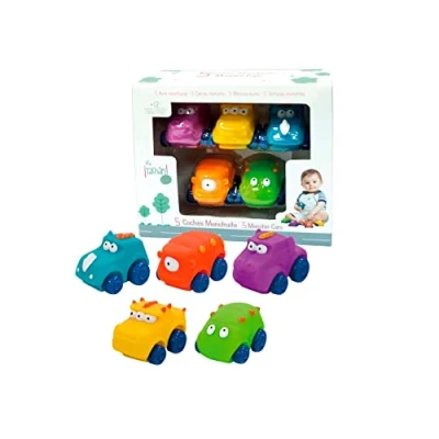 Set of 5 monster cars for the little ones. In orange, purple, green, blue and yellow. Fun cartoon faces are super adorable for younger children They are made of soft silicone material that ensures that the play between the little ones is safe and that it is very pleasant to touch the cars and manipulate them. Also the grip makes it much more comfortable with this kind of material Toy cars for younger children help them develop motor skills while driving the stroller from one place to another. Another important feature of this type of toys is that they develop their creativity and imagination They are toys that operate without batteries, in a simple way, that attract the child's attention in terms of colors, shapes and functions. and they are completely safe allowing 100% entertainment. They will begin to recognize to associate the colors, Manufacturer: CPA TOY GROUP TRADING S.L.