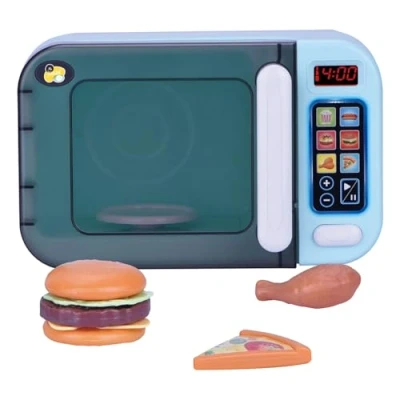 TACHAN Toy Microwave with Light, Sounds and Turntable Digital Display 6 Time Functions Includes Food (CPA Group 782T01005)