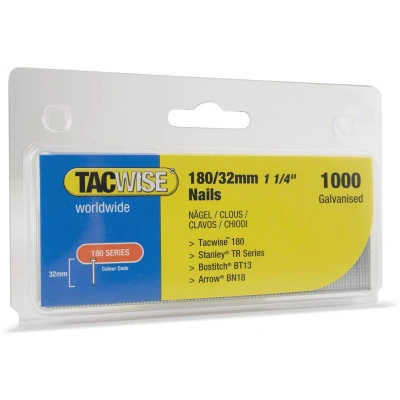 General description 180 18 Gauge 32mm Nails Pack 1000 is designed for use with various nailers, ensuring compatibility and efficiency in your DIY and home improvement projects. Technical specifications Gauge: 18 Length: 32mm Pack Quantity: 1000 nails MPN: 363 EAN: 5018505028783 Compatibility and accessories Compatible with 0327 Master Nailer 191EL Pro Compatible with 0192 Master Nailer 181ELS Pro Compatible with 0328 Hobby 53EL Compatible with 516857 Pro 140EL Compatible with 0756 Master Nailer Ranger 40 Duo Pro Pack Compatible with 0758 Master Nailer Ranger 40 Duo Trademans Pack Other information Note: Image is for illustrative purposes only and may differ from the actual product.