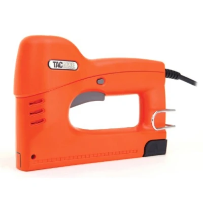 Fires Tacwise type 13 Staples in sizes 6-14mm and Tacwise type 180 Nails 15mm Ultra compact body construction with wide ergonomic grip and staple viewing window. Long power cord Safety lock switch, belt hanger and bottom loading magazine Magazine capacity 150 staples, 90 Nails, Weight: 1.873929227 pounds, Manufacturer: Tacwise