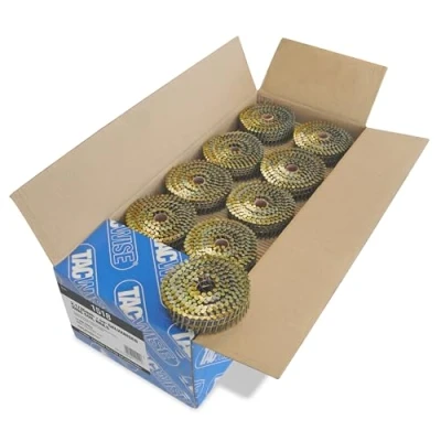 Premium quality, flat top coil nails, providing exceptional hold under extreme loading pressures in heavy duty applications Pack of 14,400 x 35mm flat top coil nails with a 2.1mm shank diameter, 16° incline and wire collated in 360 nails per coil Galvanised, long-lasting, rust resistant nails with a blunt point to reduce wood splitting and ring shank for increase the holding strength Suitable for high volume nailing in cladding, pallet building, timber frames, siding, roofing, fencing, flooring, decking and many other construction work applications Compatible with Tacwise FCN50LHH2, GCN57P, FCN55V, FCN57V and HCN65P coil nailers, also compatible with Bostitch, Makita and other coil nailers taking 2.1/35mm flat top coil nails (please always check compatibility with your tool before making a purchase), Manufacturer: TACWISE
