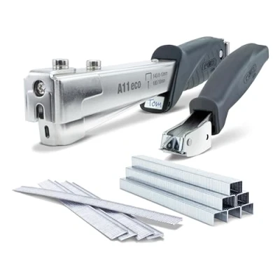 2-IN-1 STAPLE/NAIL HAMMER TACKER - Multifunctional all-steel slap hammer that fires staples and nails in a single tool, designed to offer reliability and long-lasting performance for high-volume fixing tasks COMPATIBILITY - Efficient, quick-release, removable magazine fires 150 type 140/6-10 mm staples or 100 type 180/10 mm nails without reloading; We strongly recommend using Tacwise fasteners 0.95 KG SUSTAINABLE DESIGN - Compact, all-steel construction with minimal working parts and wide grip ECO handle that enhances comfort and precision for both left and right-handed users, made from 100% recycled post-consumer TPE material APPLICATIONS - Suitable for indoor and outdoor applications including securing flooring underlay, carpets, roofing felt, insulation, plastic wrapping, damp-proof coursing and many more DESIGNED FOR DISASSEMBLY - Improving material recovery minimises environmental impact and promotes sustainability KIT INCLUDES - ECO A11 Staple/Nail Hammer Tacker, ECO Staple Remover, 500 x Type 140/8 mm staples and 500 x Type 180/10 mm nails supplied in plastic-free packaging, Manufacturer: TACWISE