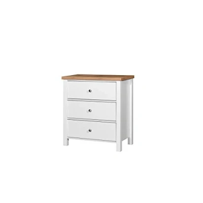 White Frames with Contrasting Oak Top. Spacious 3 Drawers. Round Metal Knobs and Metal Drawer Runners. Assembled Dimension H 78.5cm x W 70cm x D 40cm
