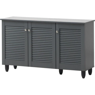 TAD TIMBER ART DESIGN UK Grey Wooden Shoe Cabinet with Louvered Doors, 3 Compartments