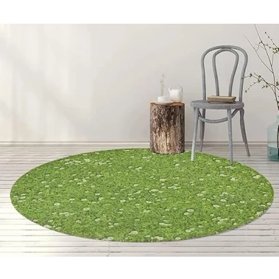 Tadi & Imperio1979 Round Vinyl Rug Digital Printed Flowers with Lawn for Living Room Kitchen Entrance Bedroom Non Slip PVC Backing Diameter 100 cm