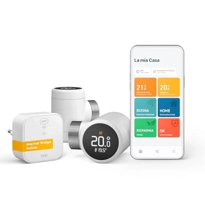 SAVES ENERGY AND HEATING COSTS: With the intelligent heater thermostat X Starter Kit from tado°, the experts for smart heating, users save an average of 22 percent in energy – the more rooms you control, the more you save EASY DIY INSTALLATION, EVEN OFFLINE: The included adapter allows the thermostat to be fitted to almost every radiator valve, while the metal nut ensures firm hold with no risk of leakage (exclusively with additional template) CONTROL VIA APP: The thermostat has numerous features for your heating system, such as smart scheduling, temperature control via the app and much more – with money-back guarantee FOR YOUR SMART HOME As well as adjustment directly on the thermostat, you can set the individual temperature in each room very simply using the app or a smart speaker such as Amazon Alexa, Google Assistant or Apple Siri INTUITIVE USE: The thermostat is easy to install and use thanks to the touch display – the removable battery is fully charged in around 2 hours using a standard USB-C cable (required only 1x per season) FUTURE-PROOF TECHNOLOGY: Matter allows different smart home appliances to communicate with each other, while Thread ensures a stable network – this requires the Bridge X (included) or another Thread border router MAXIMISE SAVINGS WITH AI: With ‘AI Assist’, you save up to 55% more energy thanks to automations such as Geofencing, Open Window Detection, Holiday Mode, insights into energy costs, and much more (only £3.99/month, £29.99/year, cancel anytime). Important to know: tado° X products are not compatible with tado° V3+ or older, Manufacturer: tado°