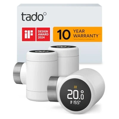 SAVES ENERGY AND HEATING COSTS: With the intelligent heater thermostat X from tado°, the experts for smart heating, users save an average of 22 percent in energy – the more rooms you control, the more you save EASY DIY INSTALLATION, EVEN OFFLINE: The included adapter allows the thermostat to be fitted to almost every radiator valve, while the metal nut ensures firm hold with no risk of leakage (exclusively with additional template) CONTROL VIA APP: The thermostat has numerous features for your heating system, such as smart scheduling, temperature control via the app and much more – with money-back guarantee FOR YOUR SMART HOME As well as adjustment directly on the thermostat, you can set the individual temperature in each room very simply using the app or a smart speaker such as Amazon Alexa, Google Assistant or Apple Siri INTUITIVE USE: The thermostat is easy to install and use thanks to the touch display – the removable battery is fully charged in around 2 hours using a standard USB-C cable (required only 1x per season) FUTURE-PROOF TECHNOLOGY: Matter allows different smart home appliances to communicate with each other, while Thread ensures a stable network – this requires the Bridge X (not included) or another Thread border router MAXIMISE SAVINGS WITH AI: With ‘AI Assist’, you save up to 55% more energy thanks to automations such as Geofencing, Open Window Detection, Holiday Mode, insights into energy costs, and much more (only £3.99/month, £29.99/year, cancel anytime). Important to know: tado° X products are not compatible with tado° V3+ or older, Manufacturer: tado°