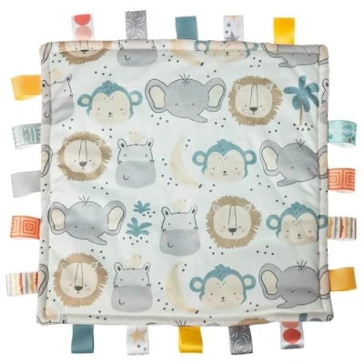 TAGGIES ORIGINAL BLANKET: Back and better than ever, it's the soothing baby creation that started it all; babies love this square piece of fabric with lots of sewn-in looped ribbons, measures 12 x 12-inches 12-INCHES Softest jersey fabric on top has custom print of happy jungle animal friends, luxurious solid light blue fabric on the flipside; blanket lightly filled with puffy fluff for an extra cozy feel TAGS BABIES LOVE TO EXPLORE: Adorned with interactive and soothing satin loop tags for baby's sensory delight. 12×12″ Patterned jersey front side. Soft plush backing. 20 looped Taggies ribbons. Each soft toy under this collection is crafted using recycled plastic bottles, including the outer plush material and fibre fill. Hangtag is also recyclable and showcases the process of creating our soft toy. NURSERY NECESSITY: A delightful baby shower gift, Taggies Original is a gift that moms and babies love; great for playing peekaboo with baby, makes a comforting lovey or a soothing security blanket, Manufacturer: Mary Meyer