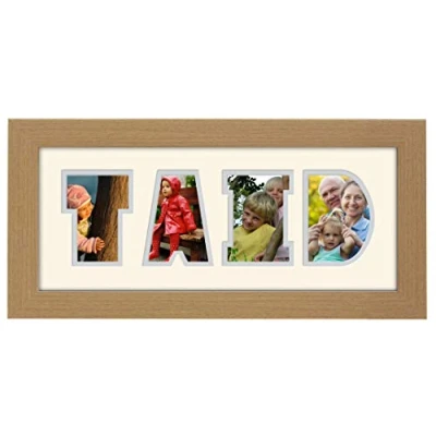 Taid Photo Frame Word Light Oak Wood Finish Birthday Welsh Grandad Picture Gift Present