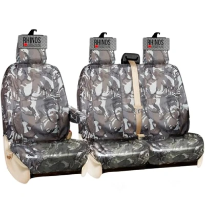 Tailored Ford Transit Custom Seat Covers 2013 2023 Driver & Double Passenger with Tray Flap Arm Rest Heavy Duty Waterproof Polyester Nylon Leather Quilted Diamond (Grey Camouflage)