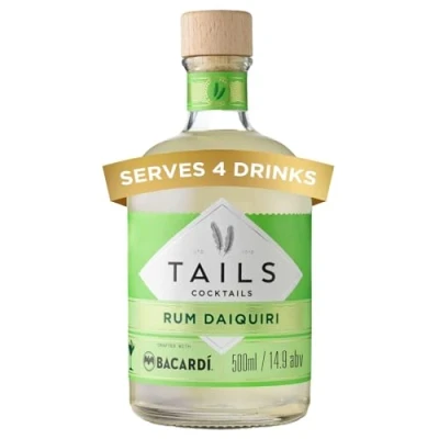 One 50cl bottle of TAILS Cocktails Classic Rum Daiquiri Cocktail, Premixed Rum Cocktail TAILS Cocktails Classic Rum Daiquiri Cocktail combines premium BACARDI Carta Blanca White Rum with zesty lime and the sweetness of sugar for bar-quality ready to drink cocktails with a refreshing taste Easy-to-make pre mixed cocktails that are so simple to serve that you don’t need to add a thing: just shake it with ice to create your favourite cocktail at home TAILS Cocktails were created in collaboration with expert mixologists and use premium spirits brands and natural ingredients to ensure the highest quality alcohol drinks TAILS Cocktails Classic Rum Daiquiri Cocktail is 14.9% alcohol by volume