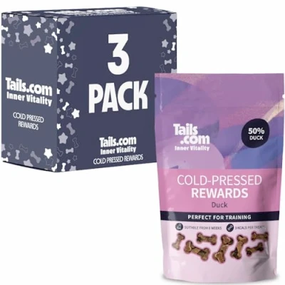 Tails.com Inner Vitality Dog Treats 3 x 70g Cold Pressed Rewards 50% Duck Grain Free Recipe No Artificial Colours or Flavours Low Calorie Snacks Single Source Protein for Easy Digestion